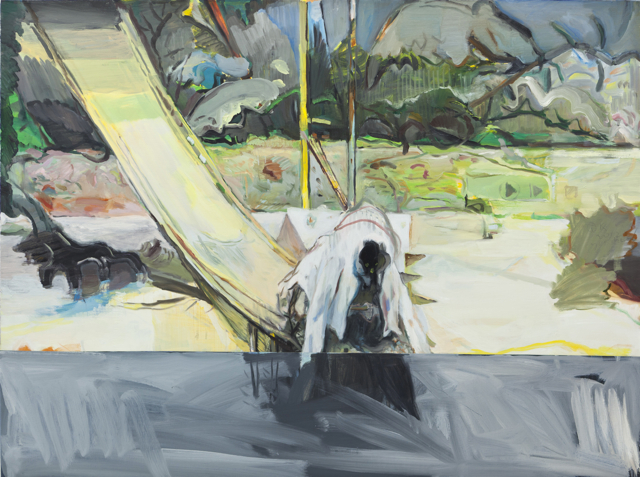 在这些多层油画中,他建构了对形象或主题非自然的叙事方式,在画面上将形象不断重复,且在画面上的形象之间发生着有意思的关联。在这些作品中,总有一个满含不确定的光环——一个满载着无数可能性的故事结局。